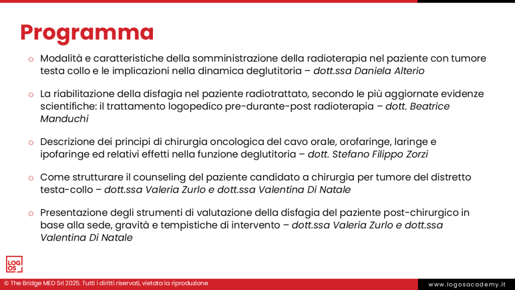 Disfagia nel paziente adulto – Ed. 2025 | Modulo 2: Paziente con tumore testa-collo